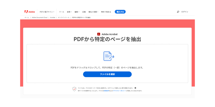 PDFファイルの特定のページだけを抽出するなら、Acrobat オンラインツールを使えばカンタンです。今すぐ無料で試しましょう。