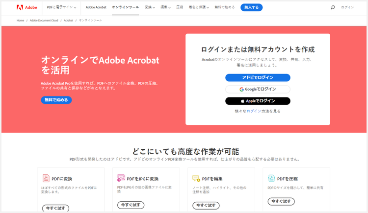PDFの編集や変換に便利な「Adobe Acrobat オンラインツール」