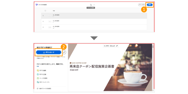 PDFファイルは上から順に結合されます。