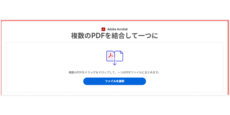 方法2.「ファイルを選択」ボタン付近のエリアに、結合したいPDFファイルをドラッグ&ドロップする