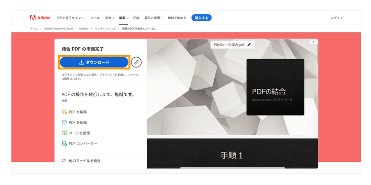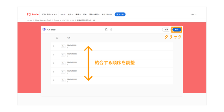 Acrobat オンラインツールの「PDF結合」を使ってみる