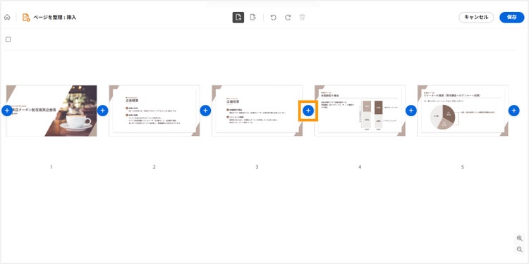 ドラッグ&ドロップで、直感的にページの順番を入れ替えられます。資料の最終チェック時にページの順番を少し変えてわかりやすくしたい、となった場合でもPDFファイルのまま並び替えできるので便利です。詳しい操作手順は、以下の記事で解説しています。