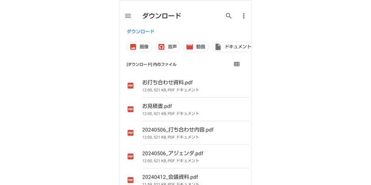 Androidスマホ内にダウンロードしたPDFファイルは、基本的に内部ストレージの「Download」フォルダに保存されます。「ファイル」アプリの「ダウンロード」のフォルダをチェックしてみてください。