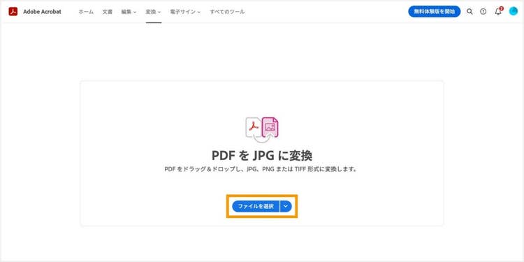 ご紹介するのは、PDFの開発元であるアドビが提供する「Adobe Acrobat オンラインツール」の「PDFをJPGに変換」です。