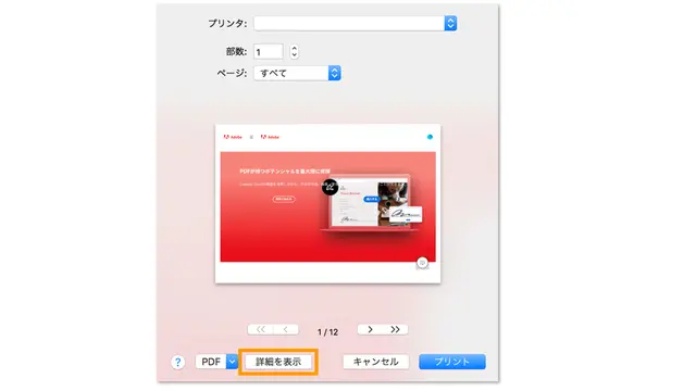 ポップアップ画面下部の「詳細を表示」をクリックすると、印刷時の詳細設定ができる画面が表示されます。