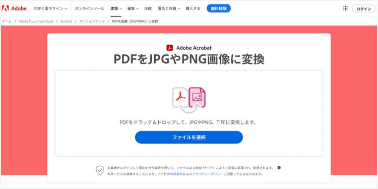抽出したページをJPGやPNGなどの画像ファイルに変換したい場合は、「PDFをJPGやPNG画像に変換」が便利です。PDFファイルをアップロードするだけで、自動的に画像へと変換されます。