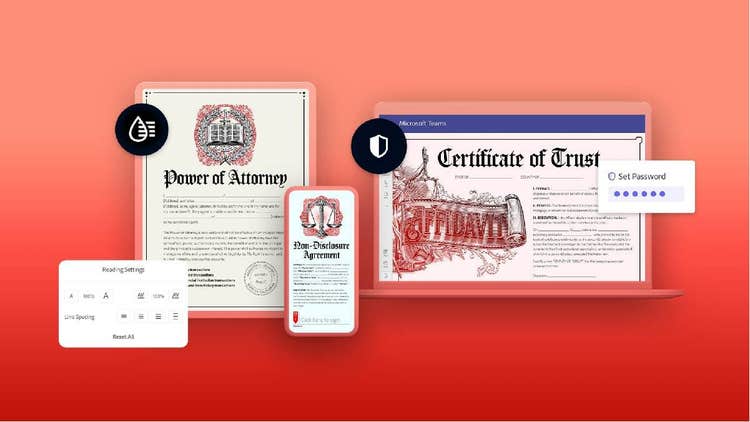 今⽇のハイブリッドな職場環境においてデジタル⽂書のセキュリティを維持することは困難な場合があります。組織は、セキュリティの脅威を阻⽌しファイルを保護しながら、コンプライアンス基準を遵守するとともに、様々な⼈々がファイルにアクセスできるインクルーシブなソリューションを必要としています。