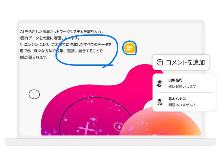 あらゆるPDFにコメントやノート、マーキングなどの注釈が付けられます。