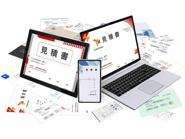Acrobatを使えば、複数の見積書を期間別、取引先別など、必要に応じて1つのPDFで管理できます。書類の枚数、用紙のサイズや向きなどを気にすることなく、連続したページのPDFとして統合できます。またクラウドストレージに保存すれば、いつでもどのデバイスからでも確認できます。