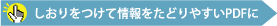 | PDFの各ページにつけられたしおりは、しおりパレットに一覧表示され、任意のしおりをクリックするとその箇所にジャンプし、指定した倍率で表示されます。また、しおりを階層化することで、大見出しや小見出しといったレベルの違いを明確にすることができます |