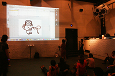 セッション終了後、スペシャルイベントが開催されるまでの間、観客は会場に設置された複数のブースを楽しむことができた。Adobe DJ ブースでは、「TAKAGISM」でおなじみのマルチクリエイター高木敏光氏によるライブパフォーマンスが繰り広げられた。高木氏はDJブースからMacを操作し、これまでにFlashやDirectorなどで制作した数々の名作を独特のトークともに披露し、会場を沸かせていた。また、Adobe Areaでは、最新版のアドビ製品を試すことができ、Adobe Creative Suite 2のデモ版も無料で配布された。