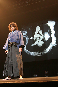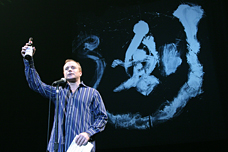 いよいよスペシャルイベント開場の時間となり、観客が一斉に開場へ戻ると、壇上では村上功氏の和太鼓の演奏とともに書道家の武田双雲氏によるライブドローイングがおこなわれていた。迫力ある和太鼓の鼓動に合わせ、武田氏が力強い線を描き出す様を間近で見ることができる貴重な体験だ。