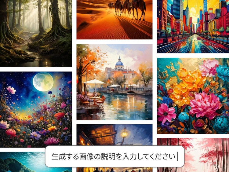絵画生成AIを使えば、想像力と簡単なテキスト入力だけで、水彩画や油絵といったスタイルの画像を作成できます。