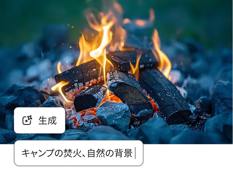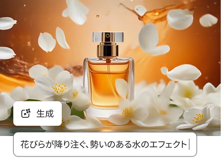火、水、煙、レンズフレアなどの特殊効果を追加できます。{{premiere}}や{{after-effects}}で作成した素材との融合や、Fireflyで新しいエフェクトの生成が可能です。