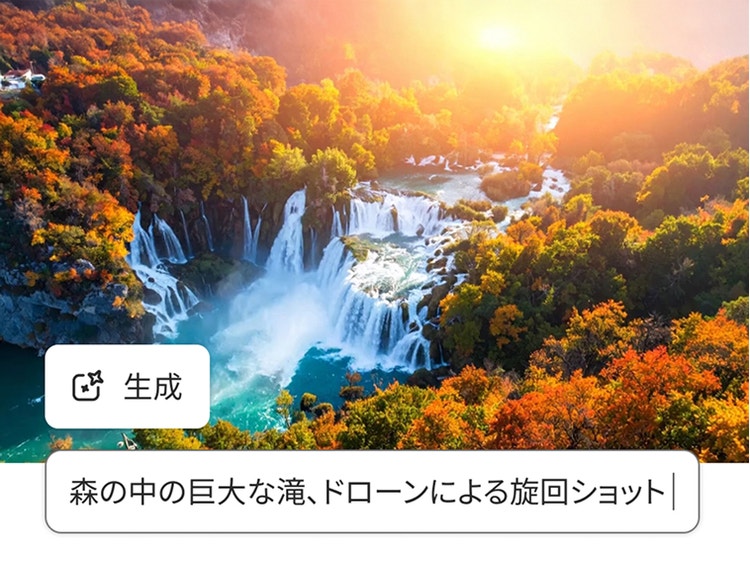 風景、植物、動物などのBロールをすばやく作成し、美しい映像素材で足りないカットを埋めることができます。カメラのアングルや動きも指定可能です。