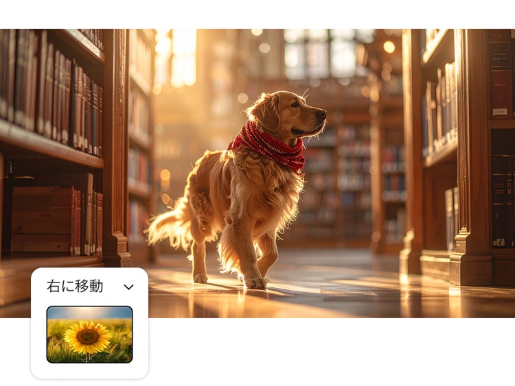ズーム、パン、チルトなどの動きを設定して、動画にカメラワークを追加できます。被写体に合わせて、様々なショットサイズやカメラアングルも選択可能。シーンを演出したり、ドラマチックなフォーカスを加えたり、視線を意図的に導いたりすることで、ストーリーテリングの効果を最大限に高められます。