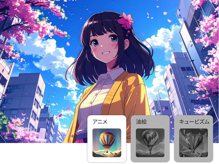 アニメから油絵、キュービズムまで、お気に入りのスタイルを選びましょう。カラーやライティング、カメラアングルも調整可能。わずか数分で独自の作品を生成できます。