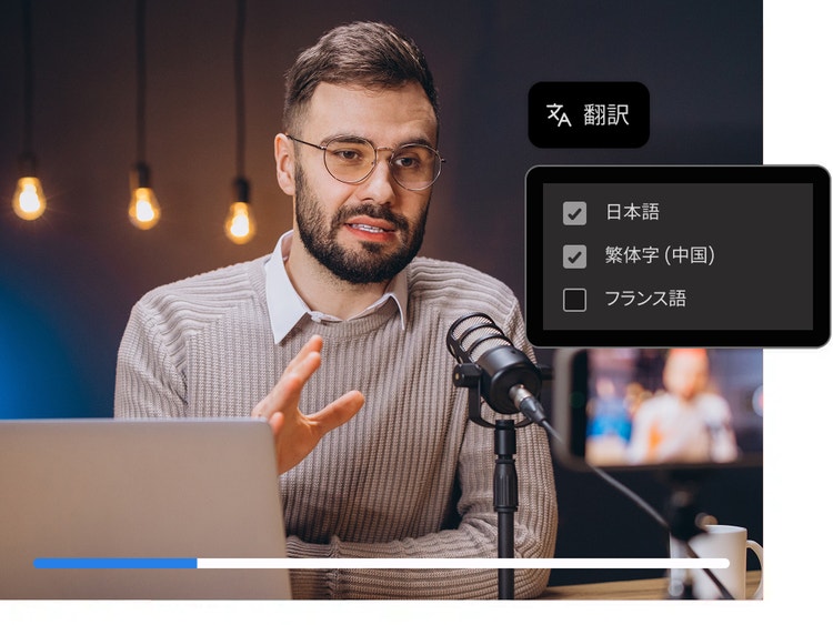 SNS用動画でも販促用動画でも、希望の言語に翻訳して、世界中の人々に共有できます。