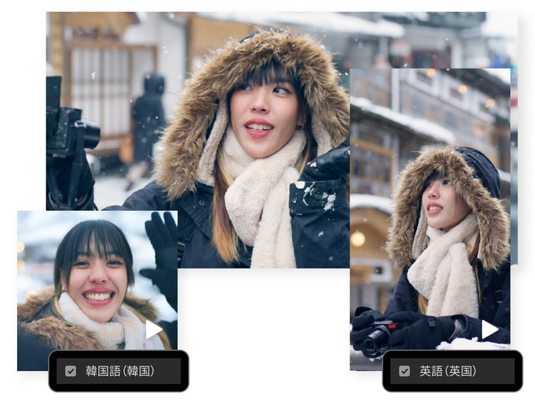 元の動画と同じ声、トーン、抑揚、音響を維持することで、複数の言語でネイティブスピーカーが話しているかように聞こえます。法人向けプランでは、リップシンクなどの限定機能も利用できます。翻訳された音声と口の動きを合わせることで、より自然な見せることが可能です。