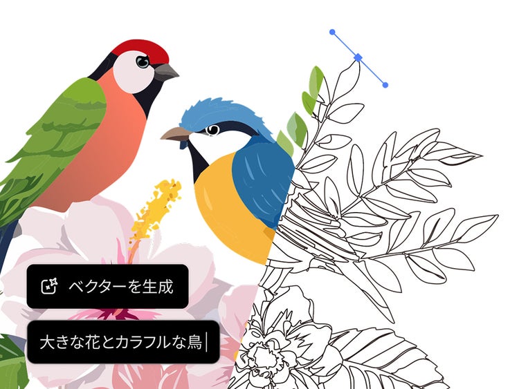テキストプロンプトを入力するだけで、編集可能なベクターグラフィックをすばやく生成。アウトラインからのグラフィック生成や、カラーバリエーションの生成にも対応しており、デザイン業務全体を効率化できます。