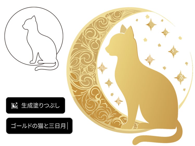 {{illustrator}}の「生成塗りつぶし(シェイプ)」を使えば、簡単なアウトラインから、魅力的なベクターグラフィックを生成できます。