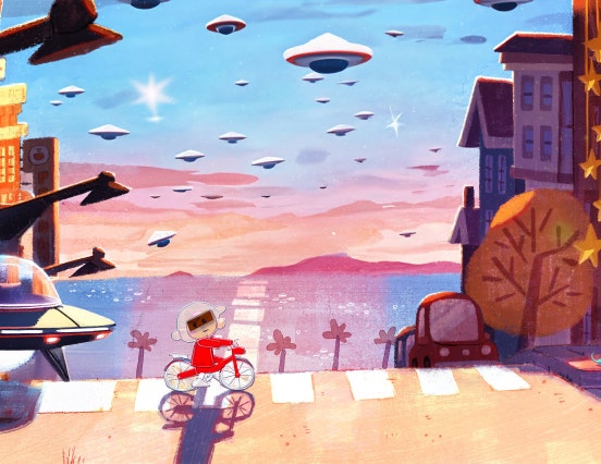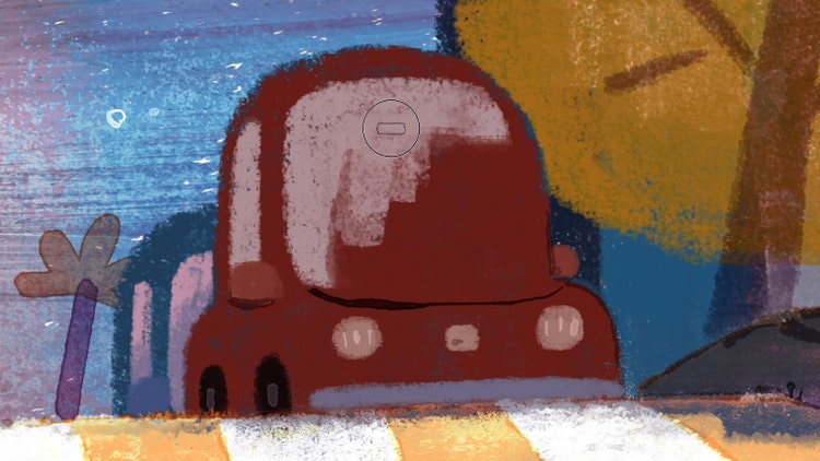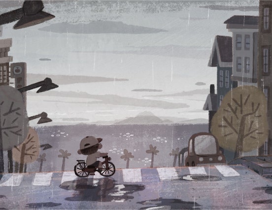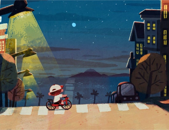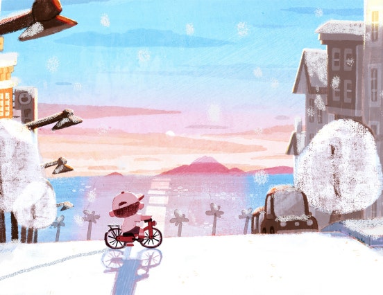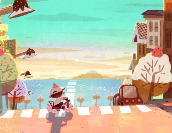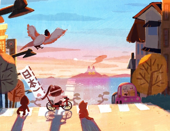 独自でカスタマイズしたブラシでざらっとした手書き風の質感を加え、絵本の1ページのような懐かしく親しみやすい世界観を演出。