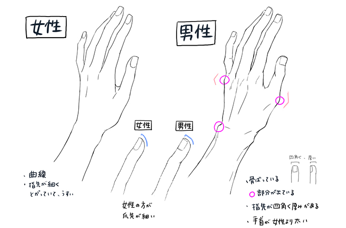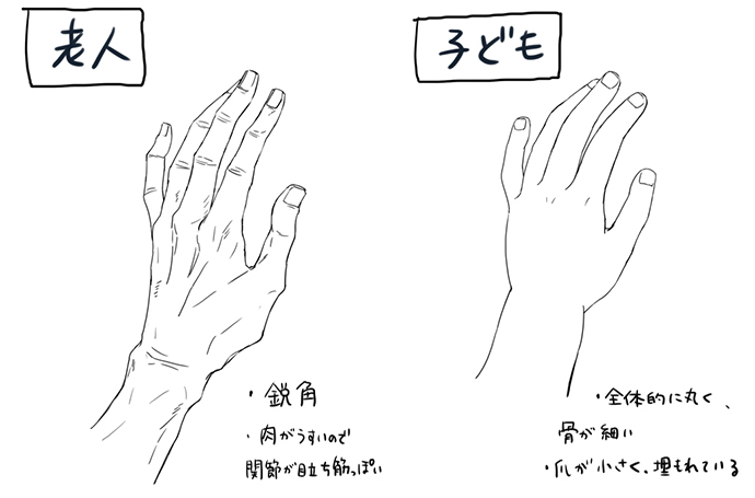 性別や年齢による手の描き分け方