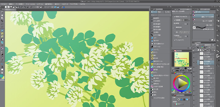 Photoshopを使うメリットはイラストの表現力を高め、効率的に制作を進めるためのさまざまな機能、豊富な色調補正機能だけでなく、長年、印刷物制作からweb制作の現場で使われている実績に裏打ちされたデータの信頼性が挙げられます。