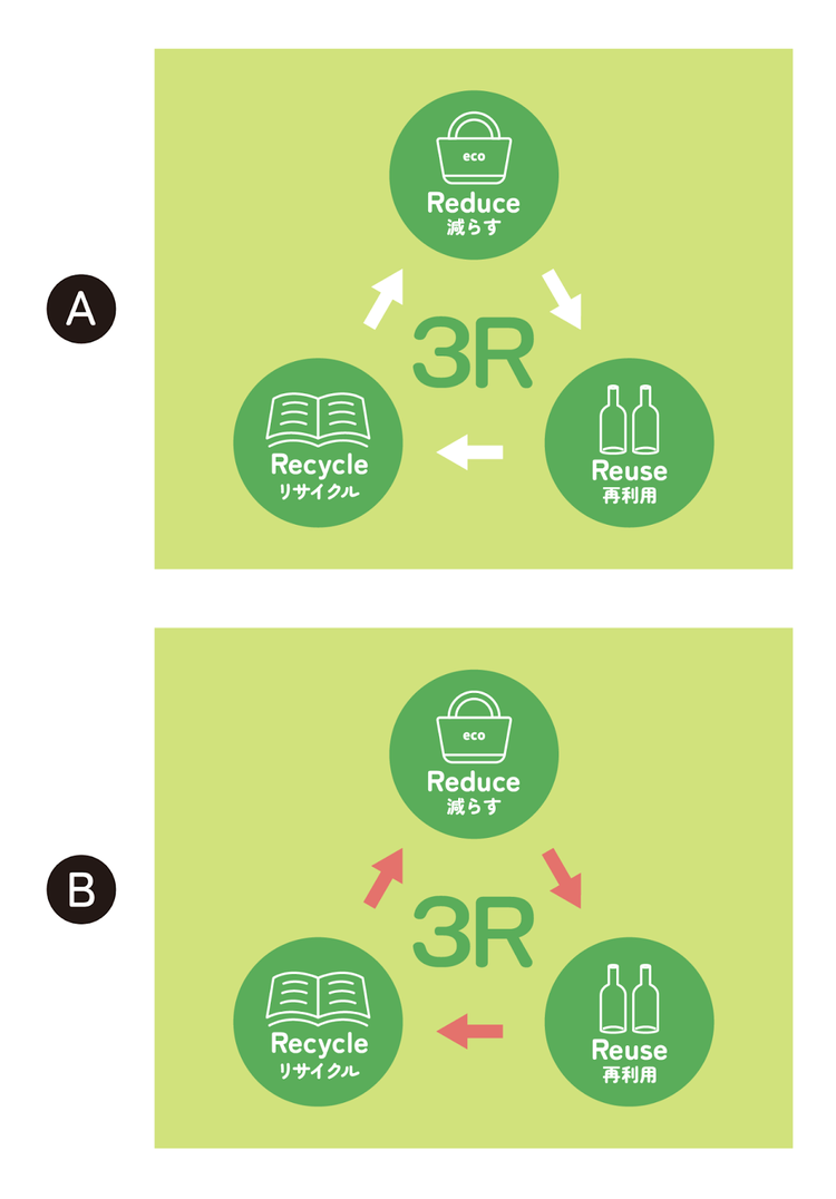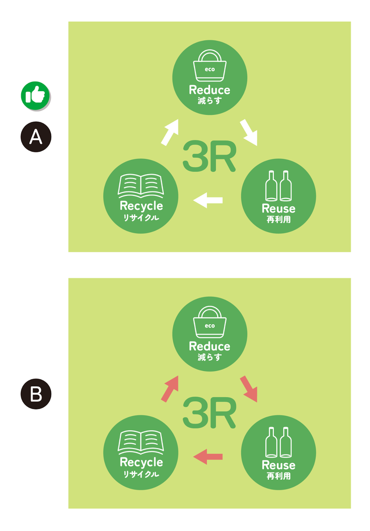 作例AとBの違いは、3つの項目の循環を示す矢印の「色」です。