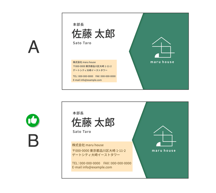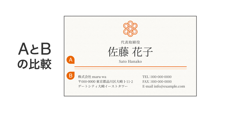 AとBの違いは、連絡先情報の文字サイズ(フォントサイズ)です。