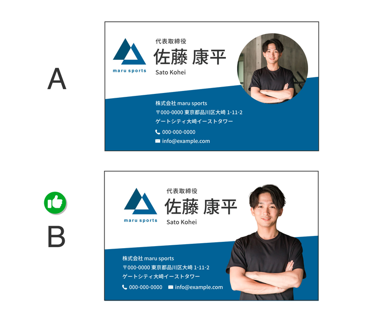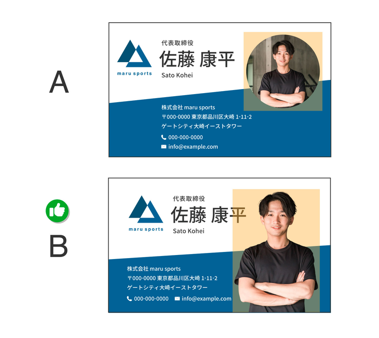 「A」はプロフィールの写真の背景が残ったままになっていますが、「B」では背景を削除し、プロフィール写真を大きく見せています。