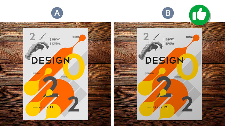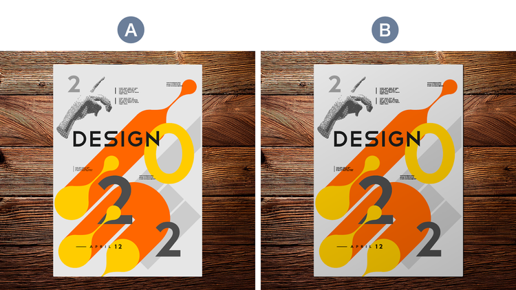 見比べてみると、Bはポスターが木の机に置かれているという現実感を自然に伝えてくれます。