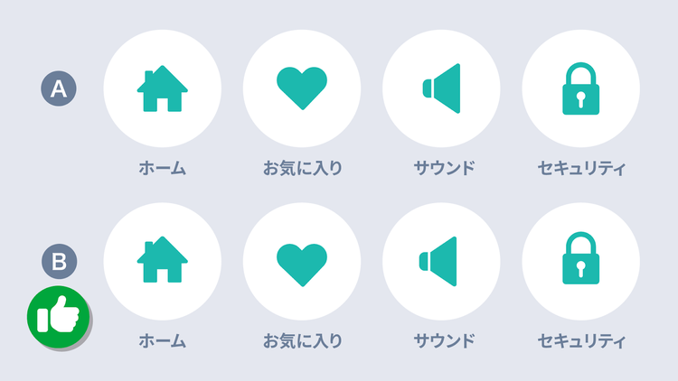 もちろん、Bのアイコンが「悪いデザイン」というわけではありません。