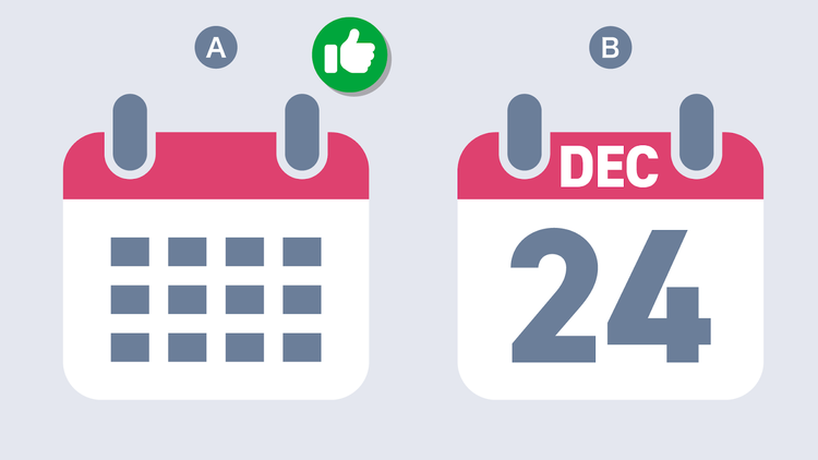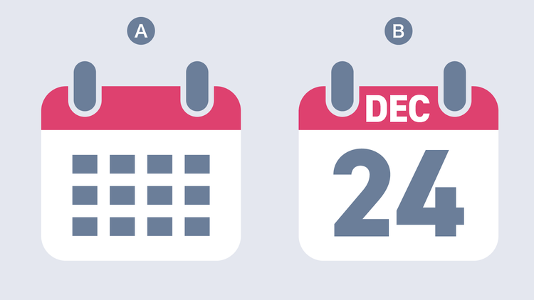 なぜなら、Aのような図形のみで構成されたアイコンは、特定の日を連想させないため、より幅広いシーンで活用できるからです。