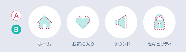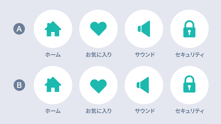 ここであらためて、AとBのアイコンを比較してみましょう。