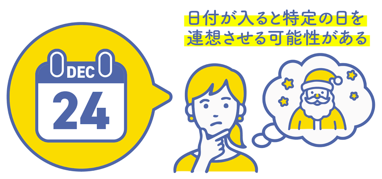 特に「DEC 24」は「12月24日」、つまりクリスマスイブを指しているため、ユーザーに意図しない意味を連想させてしまう可能性があります。