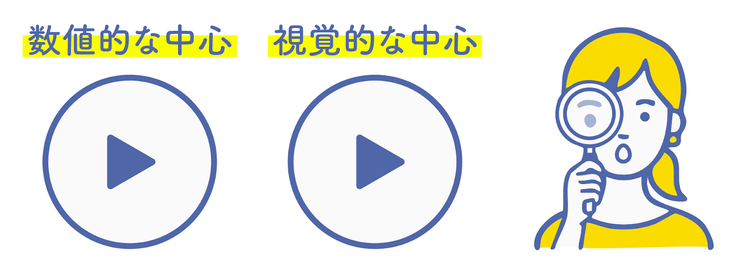 そのため、図形としての中心で配置しても、右側のボリュームが足りないせいで左に寄っているように見えてしまうのです。