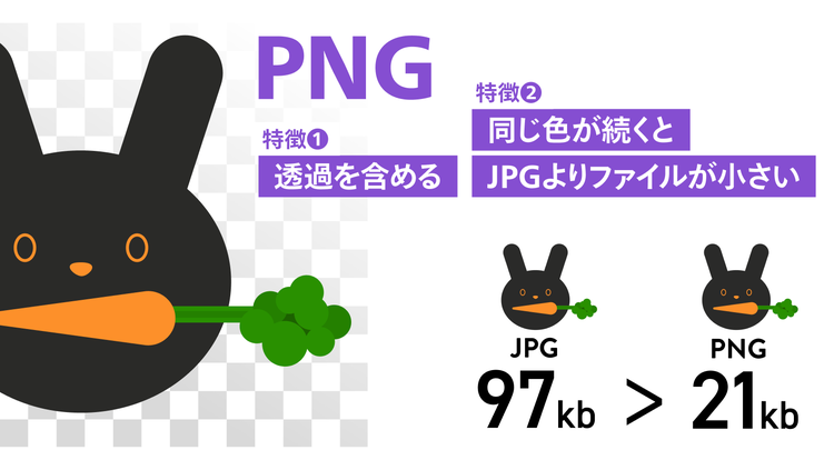 また、背景を透明にしたい(透過させたい)場合も、PNG形式を利用するのがよいでしょう。