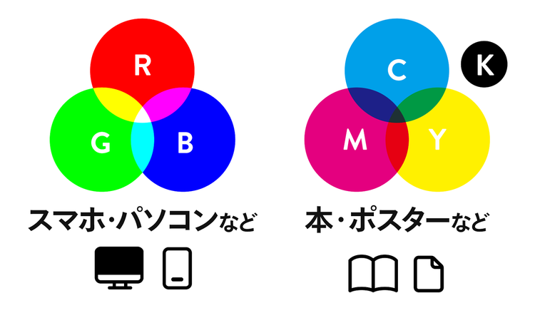 この2つのカラーモードは、色を使う媒体が「画面」なのか「印刷物」なのかによって使い分けられます。