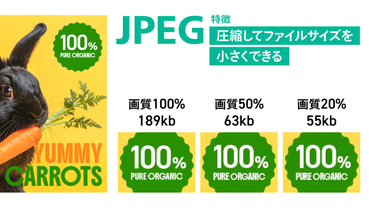 画質は多少劣化しますが、ウェブサイトの表示速度に影響するバナー広告といった、ファイル容量に制限がある場合に適しています。
