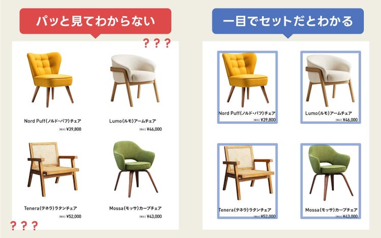 そのため、どれがどの商品に対する情報なのかが直感的にわからず、見る人が戸惑ってしまいます。