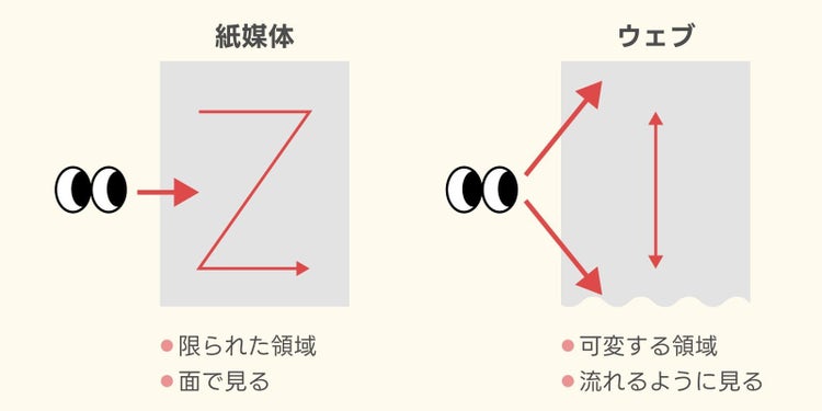 また、視線誘導を意識する際は、紙媒体とウェブで視線の動き方に違いがあることも覚えておきましょう。