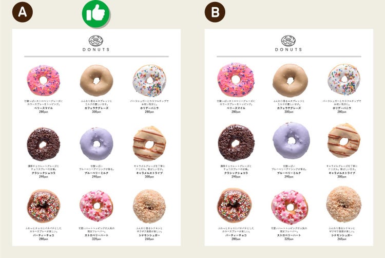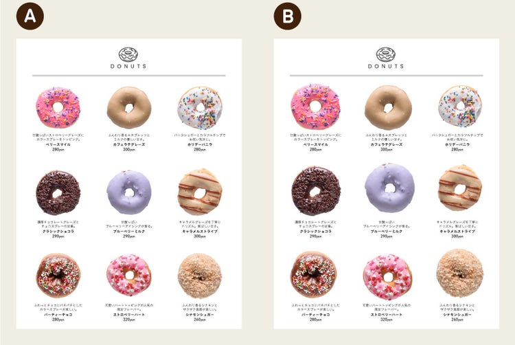 ドーナツのカタログ、違和感のないデザインはどっち?