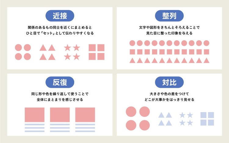 近接、整列、反復(繰り返し)、対比(コントラスト)というものです。