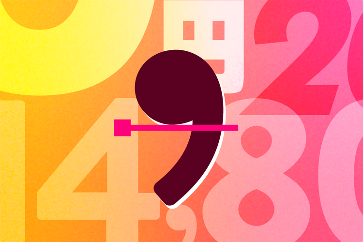 特にカンマ「,」は数字と同じフォントサイズにすると、サイズが大きく感じられ、下にはみ出すような位置に表示されることが多いです。