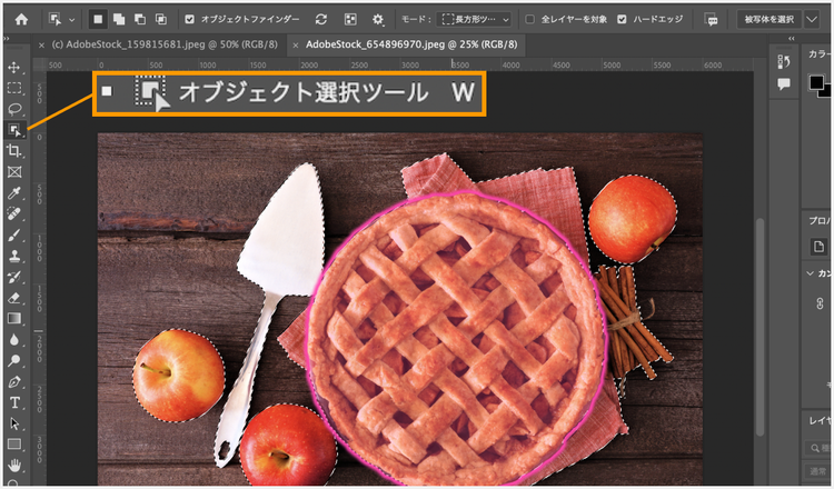 「オブジェクト選択ツール」を使えば、クリックするだけでカンタンに被写体を選択できます。