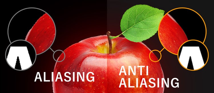エイリアシングが目立たなくなることで、自然な見た目になるほか、ディスプレイ上や印刷物で画像がキレイに表示されるというメリットがあります。