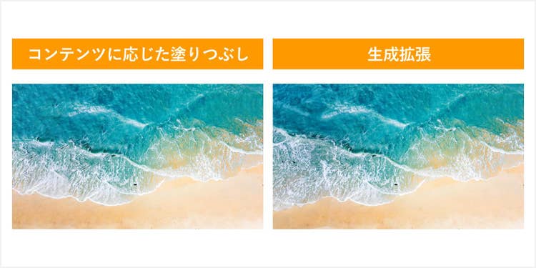 単純な画像であれば「コンテンツに応じた塗りつぶし」でも十分な精度で背景を拡張できるため、時間短縮を重視する場合はこちらを選択するのもよいでしょう。