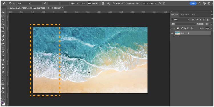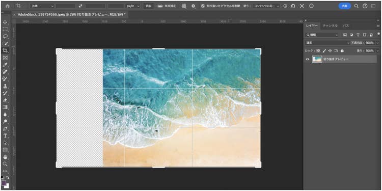 次に、左のツールパネルから切り抜きツールを選択します。