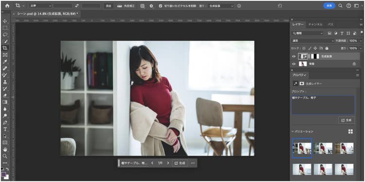 生成拡張を使えば、このような場合でも、不足部分を補いながら画像を拡張できます。